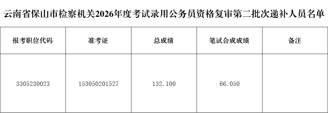 附件:云南省保山市检察机关2026年度考试录用公务员资格复审第二批次递补人员名单
