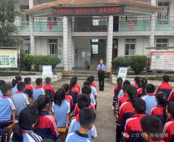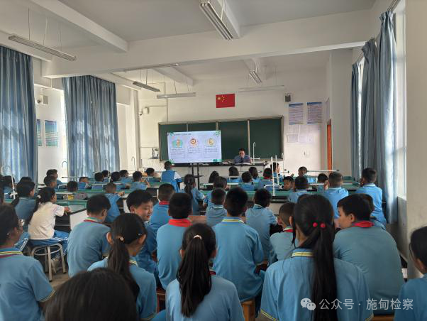少年的成长,是一幅徐徐展开的画卷,需要法治的底色来确保其稳固,也需要关爱的色彩来增添其温暖。2025年秋冬,施甸县人民检察院的画笔饱蘸法律的智慧和司法的温情,精心描绘着以校园保护、留守关爱和心理健康为主题的法治图景,来到仁和镇热水塘小学、三星小学,甸阳镇同邑小学,为孩子们的童年画卷增添了庄重而明亮的色彩。 以法为盾,夯实校园保护根基 “同学们,知道法律是如何保护你们在生活中健康成长的吗?”