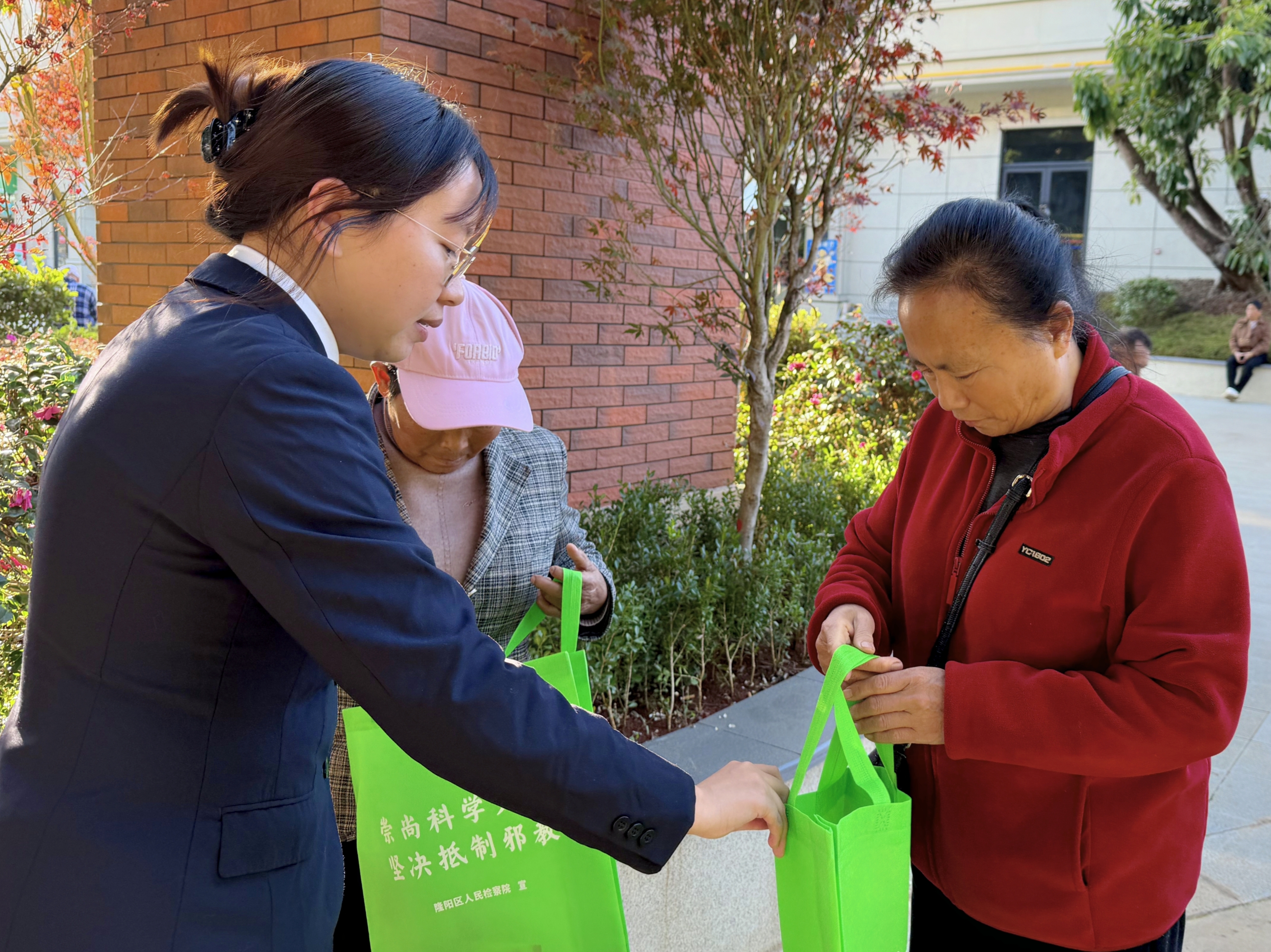 活动现场,检察干警化身“法治宣传员”,针对不同群体实际需求精准普法。面向家长群体:重点围绕未成年人监护责任、网络沉迷引导、亲子矛盾法律边界等热点问题,结合典型案例开展普法讲解,并同步普及非法集资风险防范、宪法中关于公民权利义务的核心内容等。面向学生群体:主要讲解《未成年人保护法》中校园欺凌防范、陌生人求助辨别等知识,引导孩子们树立法治安全意识。面向老年群体:通俗解读养老诈骗常见套路,手把手教老人识别“保健品骗局”“中奖陷阱”等,帮助提升防骗意识。