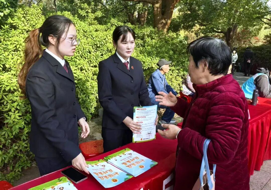 安徽省巢湖市检察院检察干警在洗耳池公园开展法治宣传活动,引导群众牢固树立依法维权意识。