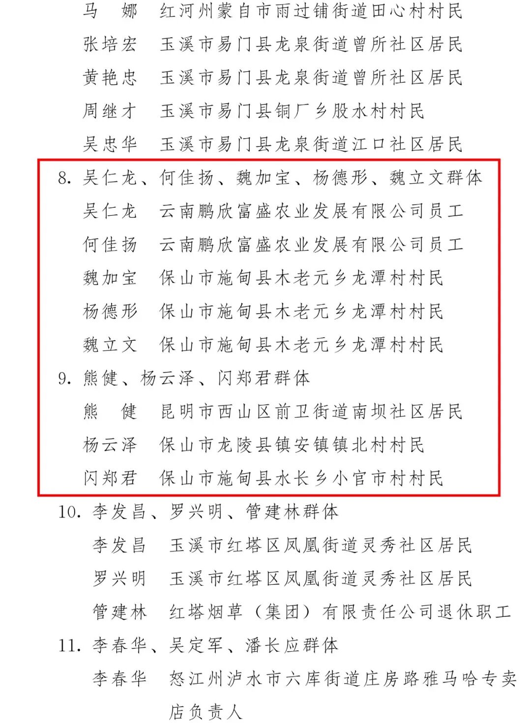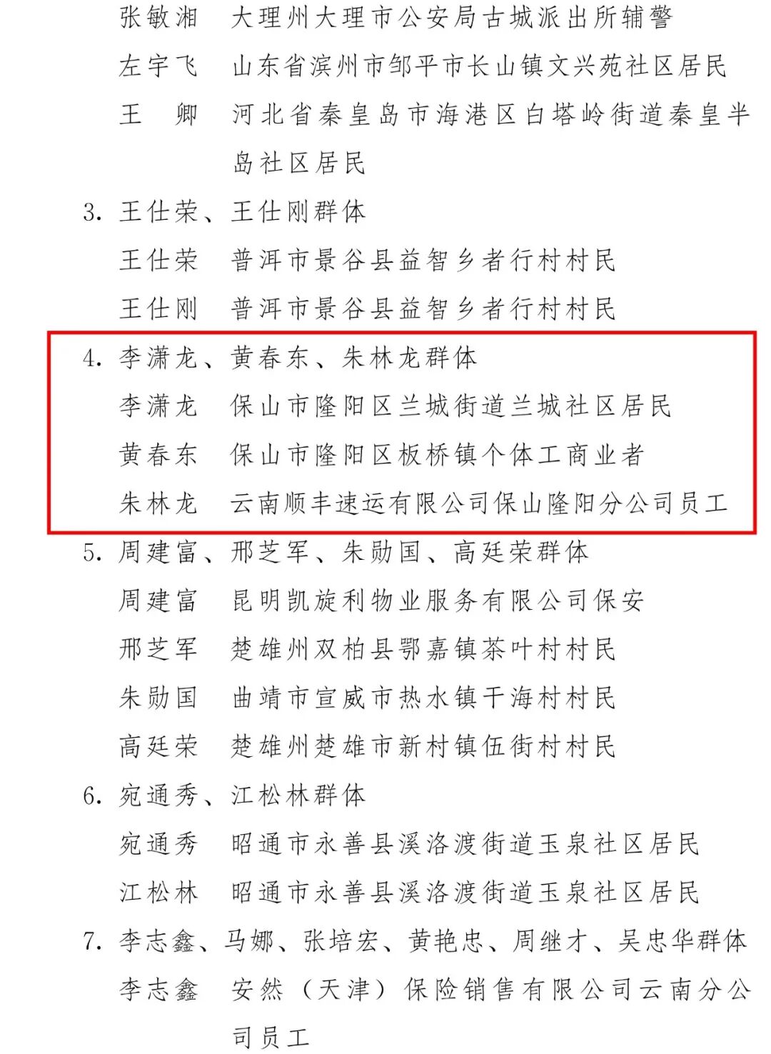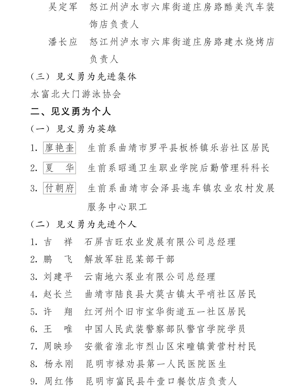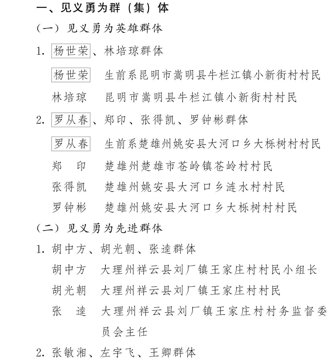 附件:2024—2025年云南省见义勇为群(集)体和个人名单